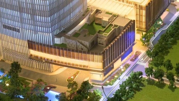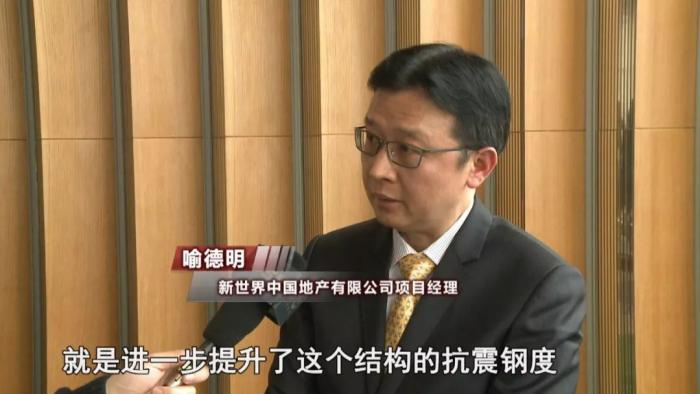 新世界中国地产有限公司项目经理喻德明说:“就是周边的矩形钢柱还有环航架二者协同工作,共同抵抗外力,就是进一步提升了这个结构的抗震度,同时确保整个东塔的水平位移比较小,同时因为我们采用矩柱体系,减少了建筑构建使得窗户,还有空间视觉避免了被钢梁所分割和遮挡,提供了更好的景观效果和更大的使用面积。”