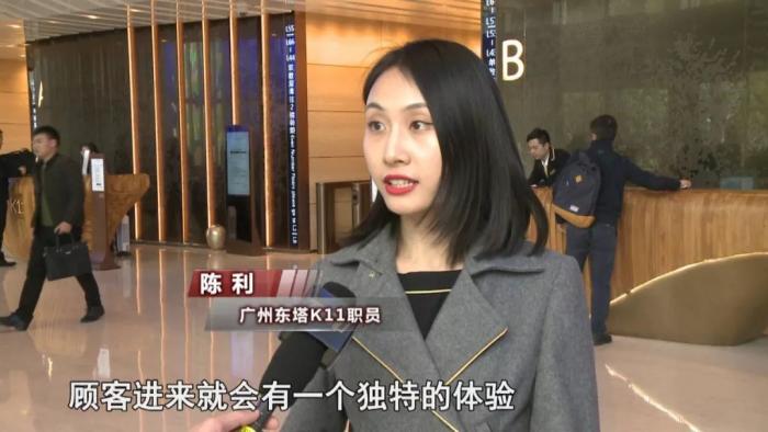 广州东塔K11职员陈利说:“立体屏它是通过一个数码画的方式,去展现一个植物的生命周期的不同阶段,例如它的生长、开花和凋谢,去诉说它对生命里程的一个理解,东塔的香薰是一个独特的香草味,是K11一个独有的味道,顾客进来就会有一个独特的体验。”