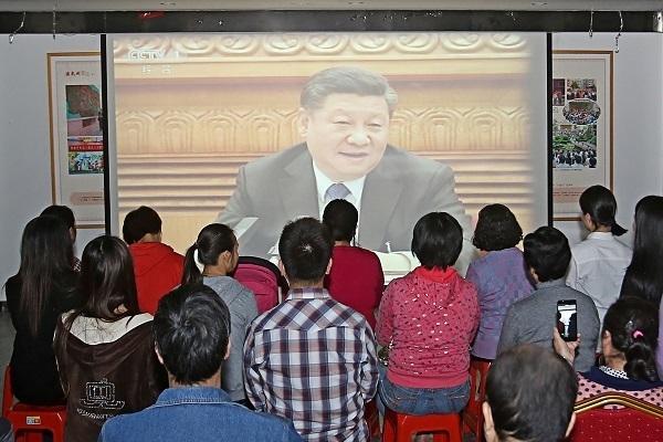 深圳市罗湖区南湖街道渔邨社区党委组织渔民村党员群众、辖区居民观看报道。南方日报记者 朱洪波 摄