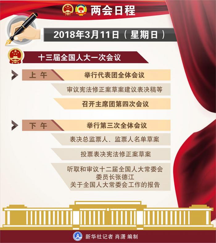 2、3月11日,十三届全国人大一次会议新闻中心将举行两场记者会: