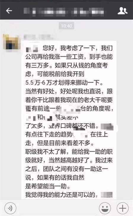 一则消息是招商证券食品饮料团队首席董广阳跳槽华创证券,拟任研究所所长的消息;另一则来自兴业证券,一位研究员与“下家”商谈薪酬待遇的微信对话。