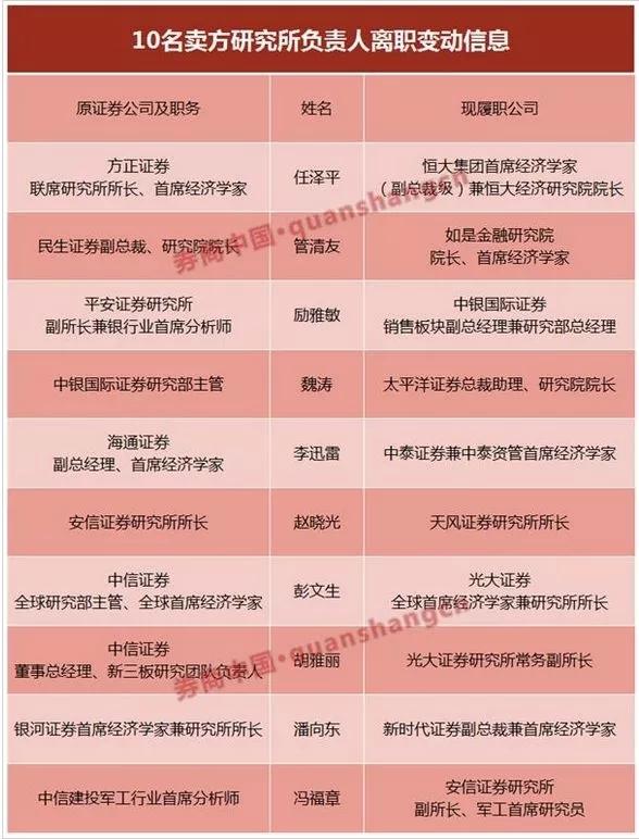 据不完全统计,近年来,至少10位券商研究所负责人跳槽。