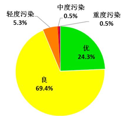 通报显示,2018年2月全省各城市空气质量达标天数比例平均为93.7%,较去年同期下降0.9个百分点;其中,优占24.3%,良占69.4%;超标天数比例为6.3%,其中轻度污染占5.3%,中度污染占0.5%,重度污染占0.5%,无严重污染。珠三角地区空气质量达标天数比例平均为94.5%,较去年同期上升3.6个百分点。