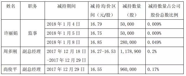 此次减持完毕后,许丽娟、周多刚和尚俊平持有公司股份占比分别为0.3%、0.88%和0.5%。