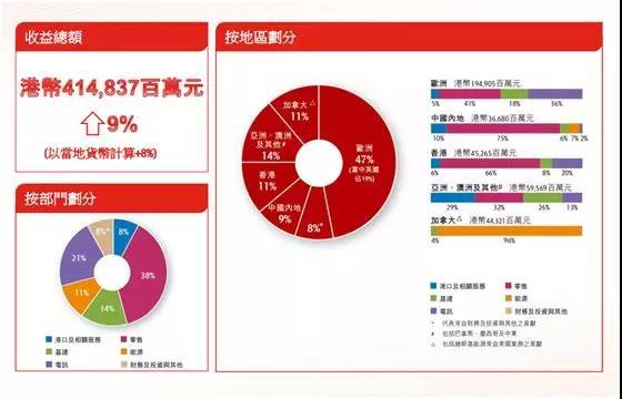 本次长和系业绩增长稳健。长和去年业绩收益总额为4148亿港元,同比增9%;普通股股东应佔溢利为351亿港元,同比增6%。每股盈利9.1港元。