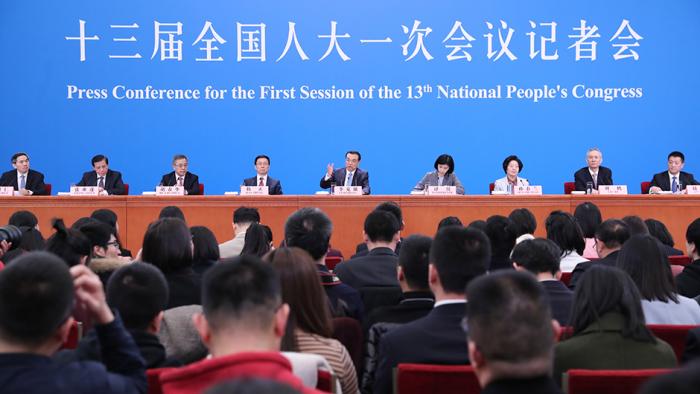 3月20日上午十三届全国人大一次会议闭幕,国务院总理李克强在人民大会堂三楼金色大厅会见采访十三届全国人大一次会议的中外记者并回答记者提出的问题。