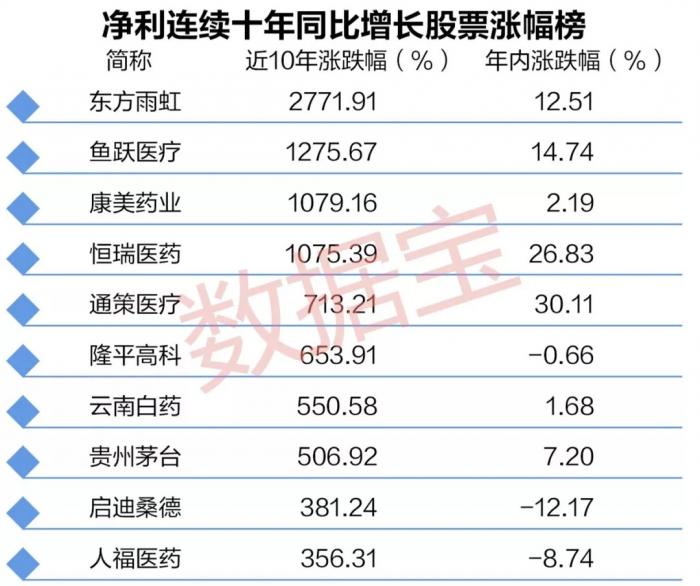跨越经济周期的王者:36股净利十年连增,4股十年涨超十倍