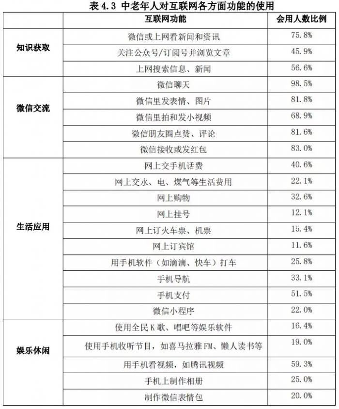 (文中图表均来源于《中老年互联网生活研究报告》,该报告由中国社会科学院社会学研究所、腾讯社会研究中心、中国社会科学院国情调查与大数据研究中心共同撰写。)