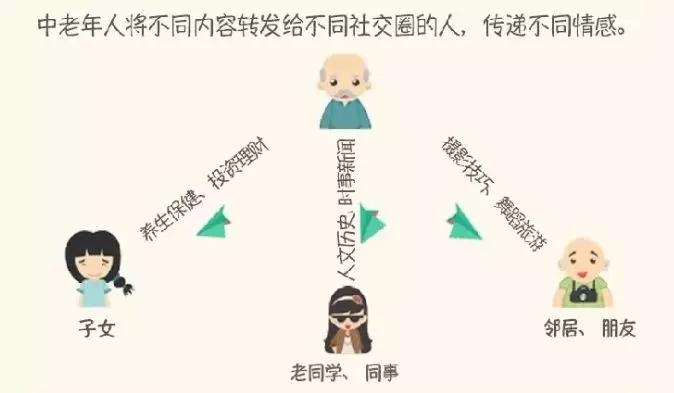 不仅如此,许多网友表示,长辈们在阅读文章后大多会转发到家庭群或者朋友圈。这点在报告中得到了证实,并称中老年人还会根据文章内容,有选择地转发给不同的社交圈内的人,将转发文章变成一种社交方式。