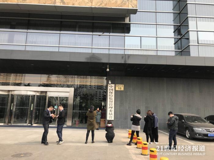 3月21日中午时分,21世纪经济报道记者在银监会和保监会门口看到,排长队与机构门牌合影的景象再现。
