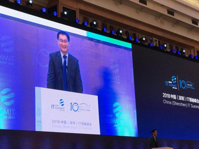 马化腾在2018 IT领袖峰会上演讲(21世纪经济报道 陈逸航 / 摄)