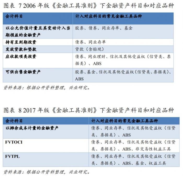 在2006年版《金融工具准则》中,基金通常计入FVTPL或可供出售资产,不得计入应收款项类投资;同业理财、信托及其他受益权、ABS等结构化主体,可能计入应收款项类投资或是可供出售金融资产。