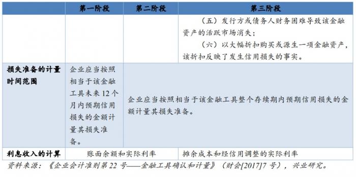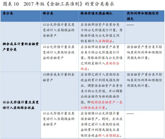 根据财政部《关于印发修订<企业会计准则第22号——金融工具确认和计量>的通知》(财会〔2017〕7号)的要求,“在境内外同时上市的企业以及在境外上市并采用国际财务报告准则或企业会计准则编制财务报告的企业,自2018年1月1日起施行;其他境内上市企业自2019年1月1日起施行;执行企业会计准则的非上市企业自2021年1月1日起施行”。对于我国商业银行而言,五大行、邮政储蓄银行、招商银行、中信银行、民生银行、光大银行以及其他在H股上市的银行将于2018年一季报开始采用2017年版《金融工具准则》。