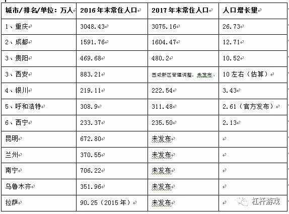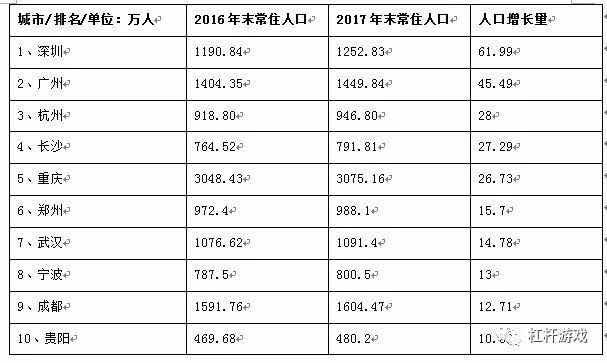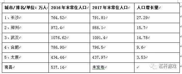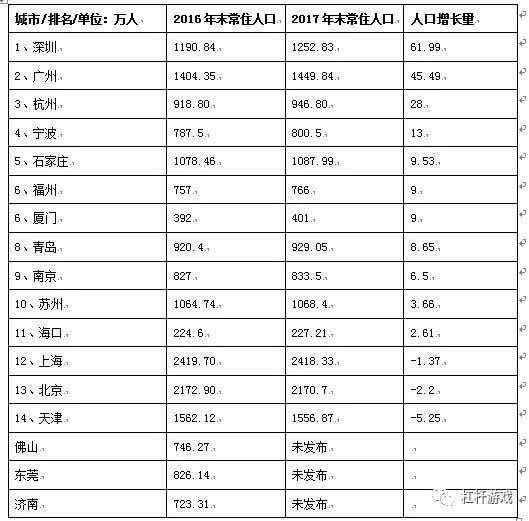 佛山、东莞、济南,则尚未发布2017年统计公报,也未发布人口数据,杠杆游戏无法判断其人口增量。