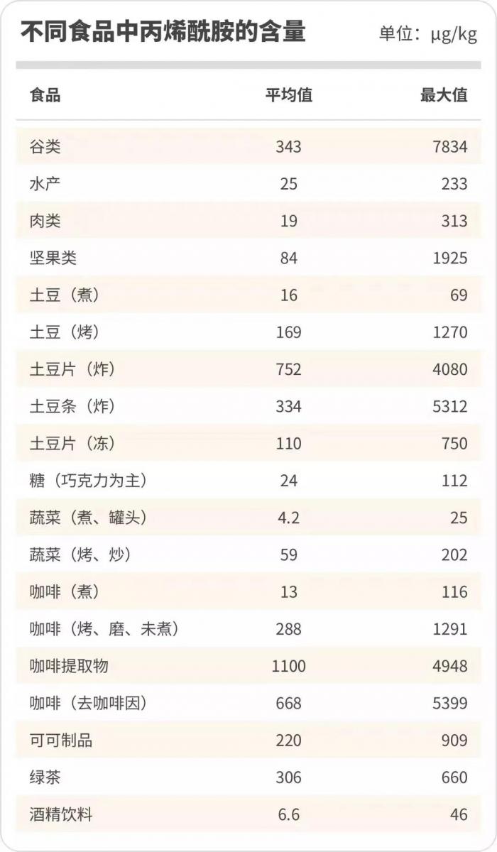 上海交通大学医学院附属瑞金医院临床营养科营养医师卞冬生在接受媒体采访时表示,丙烯酰胺在很多常见食物中都存在,比如方便面、薯片、面包、饼干、油条甚至家常的炒菜中都无法避免。简单而言,只要是通过油炸、烘焙、烧烤等方式烹饪的食物,就会含有丙烯酰胺,咖啡豆本身并不含有这一物质,而是烘焙过程惹的祸。