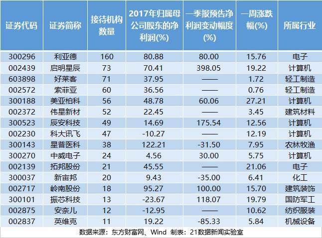 具体到公司而言,过去一周被最多机构调研的公司分别为利亚德(160家)、启明星辰(73家)和好莱客(71家)。