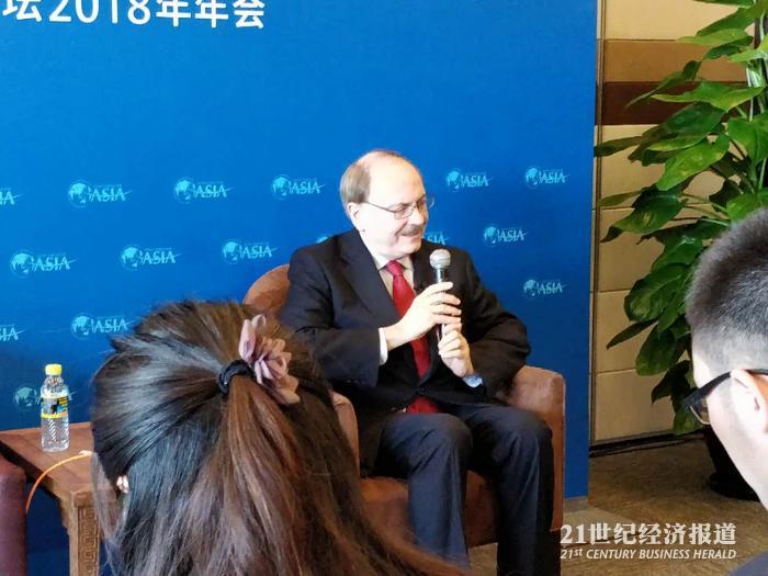 4月8日上午,约翰·霍普金斯大学高级国际关系学院东亚项目主任肯特·凯尔德(Kent Calder)教授在博鳌亚洲论坛新闻中心接受媒体采访时表示,美国总统特朗普的企业经历使其爱冒险,虽然存在发生贸易战的风险,但是相关的加税政策在5月下旬才会落实,在此之前的6周内预计会发生非常密集的谈判。