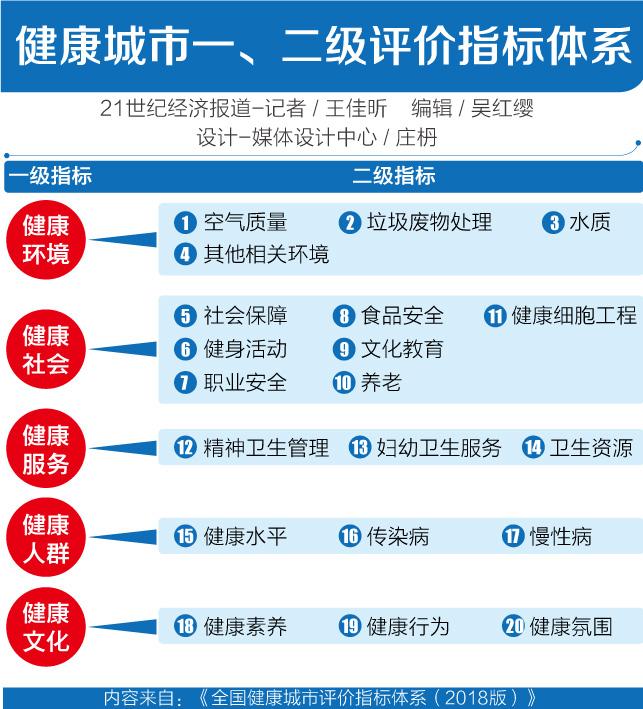 21世纪经济报道记者注意到,20个二级指标中,包括水质、空气质量、垃圾废物处理、健身活动、食品安全、养老、卫生资源、慢性病、传染病、健康素养等,涵盖面十分广泛。