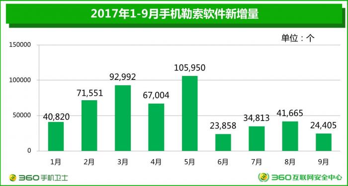 2017年1月至9月,360烽火实验室共捕获手机勒索恶意软件50余万个,平均每月捕获手机勒索软件5.5万余个。这些勒索软件除了数量多,还衍生出了诸如语音识别、二维码和文件加密等新的技术手段,需要引起广大安全厂商及用户的注意。