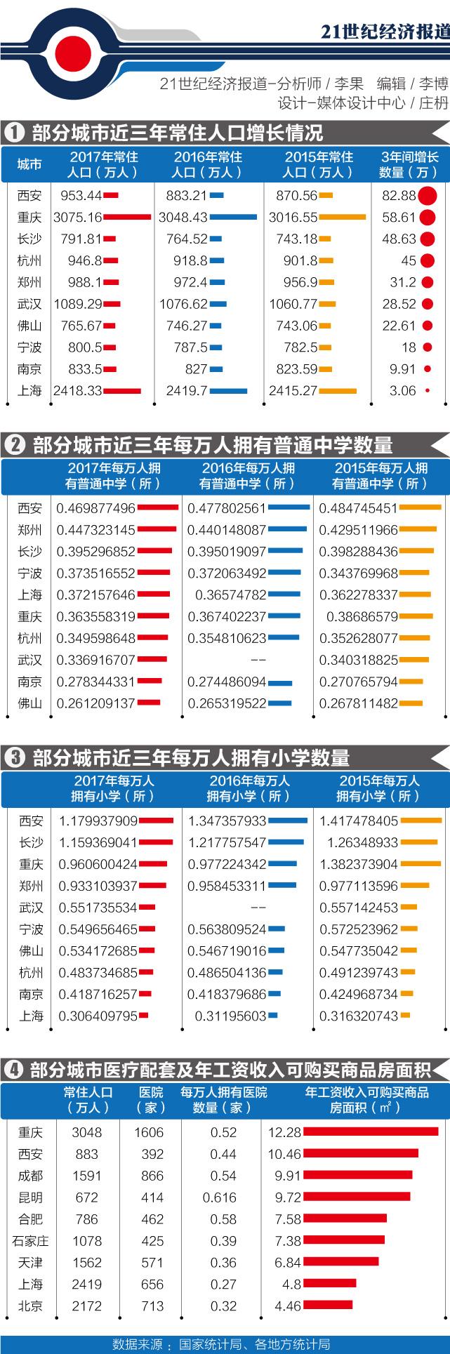 21世纪经济研究院分析师从中小学数量、医院数量、高校在校学生数量、人均工资性收入、商品房价格等指标,分析这些城市究竟吸引力如何。