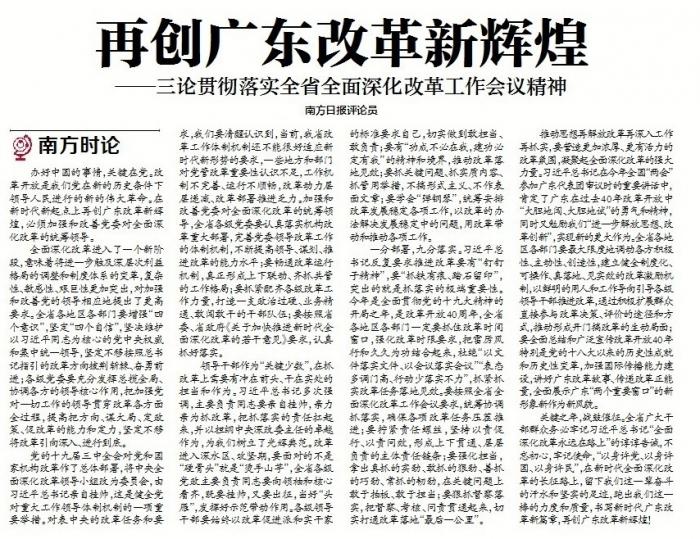 重磅!南方日报连发三评,聚焦广东新时代改革