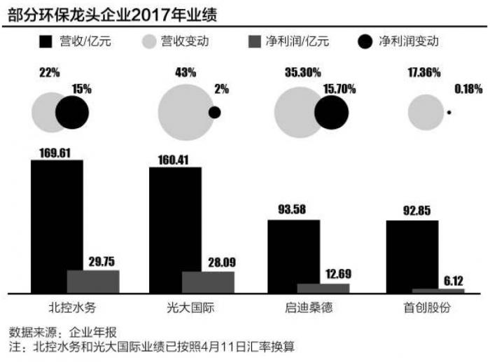 21世纪经济报道统计发现,截至4月上旬,环保上市企业中的不少龙头公司都已发布2017年年报。