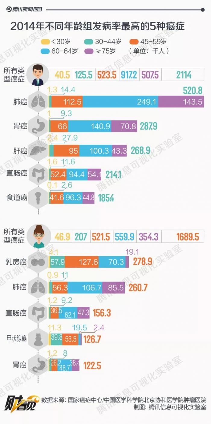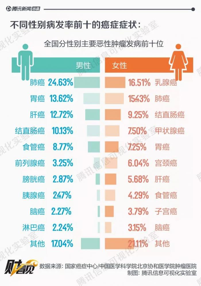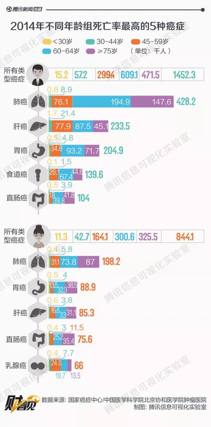 5月1日起,中国将对进口抗癌药实施进口零关税!据our world in data 网站显示,全球平均每6名死者中就有1人死于癌症。癌症已经成为人类健康的头号杀手。在全国抗癌日(4月15日)到来之前,腾讯信息可视化实验室通过大数据告诉大家癌症的相关真相。中国癌症发病率及死亡率有多高?不同年龄和性别罹患癌症的概率有多高?患癌死亡人数与经济收入有何关联?