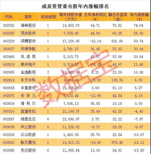 次新股成为成泉资管重点出击对象,其中多只股票成为大牛股。其重仓非次新股中也有多只牛股,海峡股份、鸿博股份等个股年内涨幅超过50%。