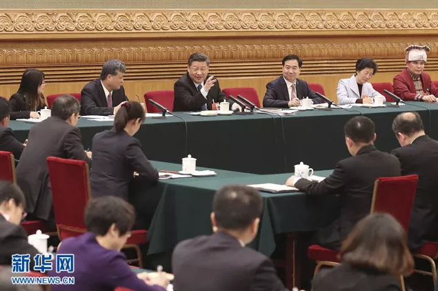 2018年3月7日,中共中央总书记、国家主席、中央军委主席习近平参加十三届全国人大一次会议广东代表团的审议。 新华社发(盛佳鹏摄)