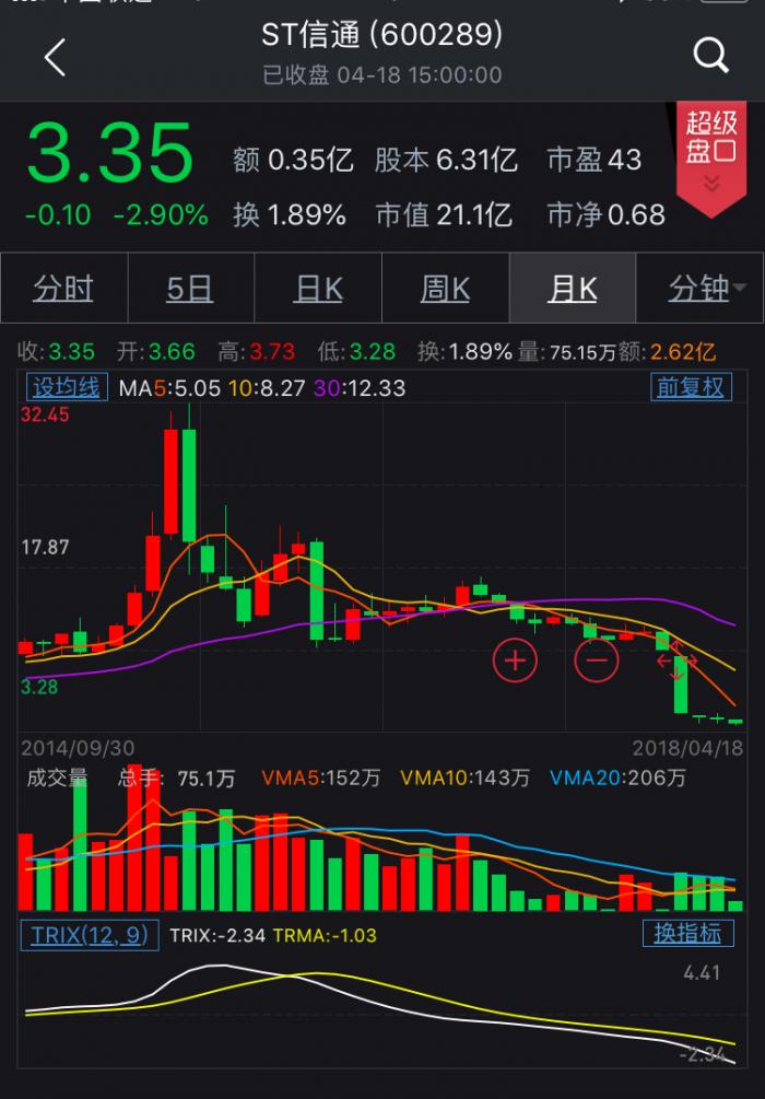 4月18日,ST信通收报3.35元,股价较去年9月25日停牌时下滑71.1%,市值大幅缩水了52亿元。