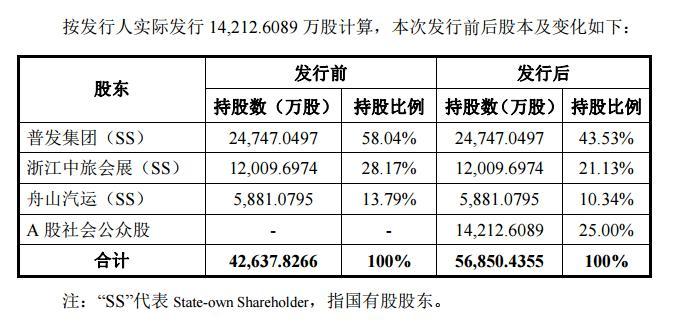 从公开资料可以看出,普旅股份背后有着雄厚的国资加持,其实际控制人舟山市国资委通过普发集团控制公司58.04%股份,通过舟山汽运控制公司13.79%股份,合计控制公司71.83%股份。