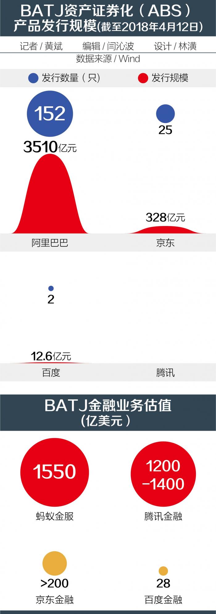 相比之下,另外几家互联网金融巨头逊色得多。2015年9月15日,京东金融发行了类似的ABS,截至目前,发行25期,总发行量为328亿元;百度“有钱花”,发了两期,总规模12.6亿元。