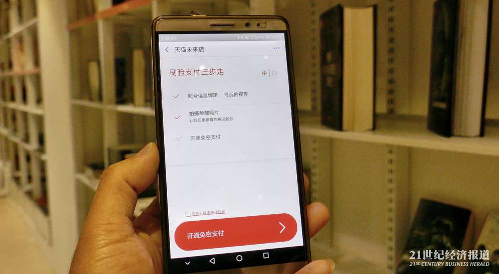 通过刷脸绑定支付宝,再刷码开通免密支付即可进书店。