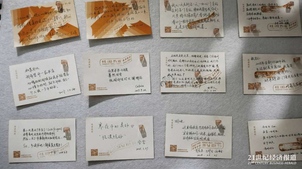 这家无人书店之前有14年的历史,这次跨越为智慧书店后,给该店带来了全新的购书体验 图为:留言墙上保留的老顾客留言便条。