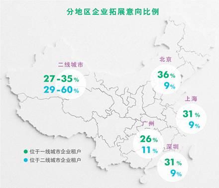 值得注意的一个趋势是,企业在一线城市继续加强布局的同时,总体上希望未来在二线城市进行扩张的比例更高。