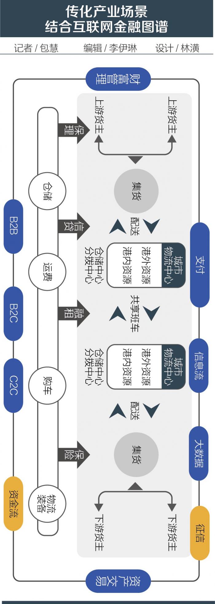 再比如非标仓单融资,银行不敢做。但传化可以围绕揽货、控货,为公路港内租赁大仓的客户提供非标仓单融资,由传化旗下的公路港、云仓进行仓储监管,传化陆鲸、易货嘀等进行物资运输,做到全程监控,形成闭环。