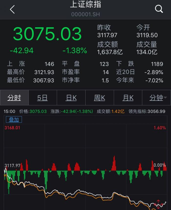 4月26日,上证综指收跌1.38%,失守3100点;深证成指收跌2.42%,报10292.12点。