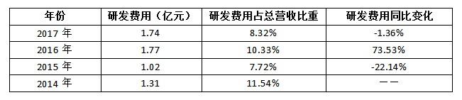 21世纪经济报道记者专门整理了公司近四年研发费用的数据(如下图所示),确实与陈轶青所述情况相同,且每隔一年,公司的研发费用也会出现同比负数增长,值得注意的是,相比于2015年,2017年的研发费用下降幅度明显减少。