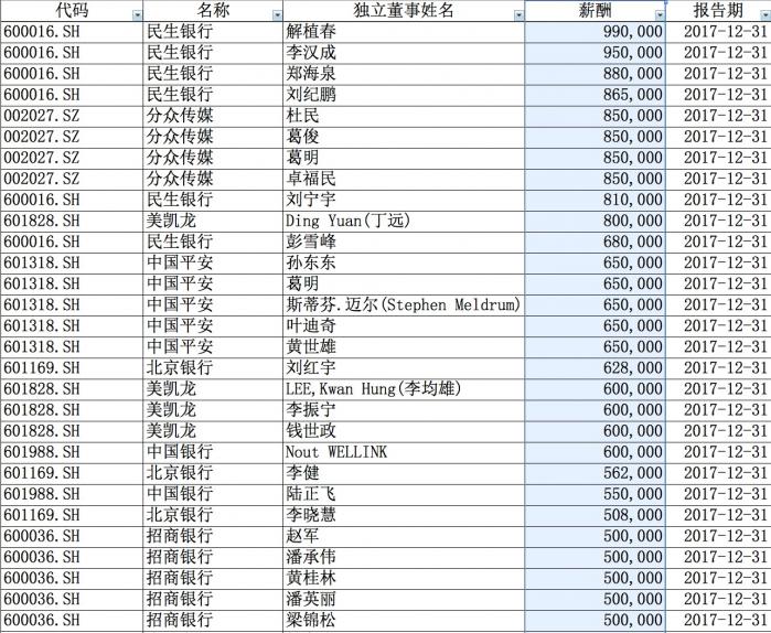 2017年年报显示,年薪50万元以上的独董达到29人,而这些高薪独董仅来自民生银行、分众传媒、美凯龙、中国平安、北京银行、中国银行和招商银行这7家上市公司。