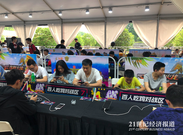 观赏大神竞技、体验游戏、领取游戏周边,每个游戏爱好者在这里都能找到属于自己的乐趣。比如在《绝地求生:刺激战场》的线下百人联赛现场,等待比赛的游客排起了长队,每组100个玩家同时“吃鸡”的场面颇为壮观。