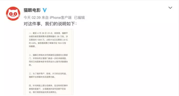 ▲猫眼电影声明