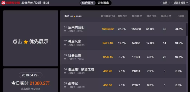 就在上映首日(4月28日)晚间,突然有多方消息爆料称,《后来的我们》出现大量退票的情况,且不少影院单日退票率都在10%以上!