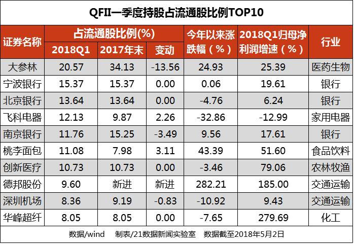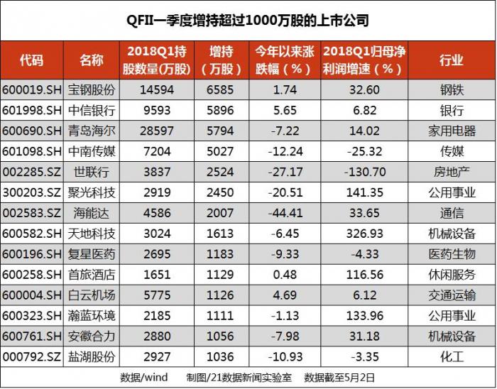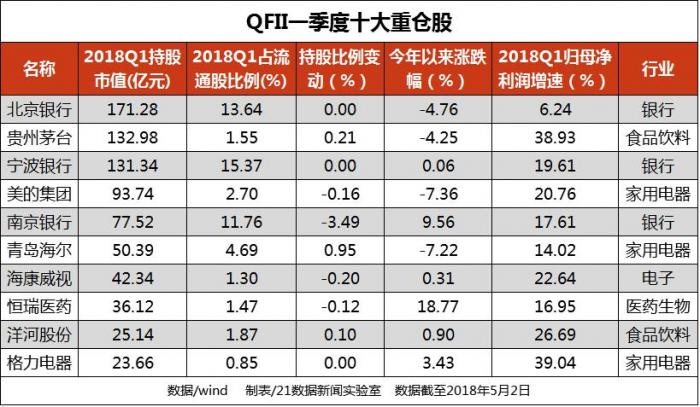 那么,外资都喜欢买哪些股票?哪些标的较受欢迎?恰逢上市公司2018年一季报披露收官,我们或者可以从QFII最新的仓位变动窥探一二。