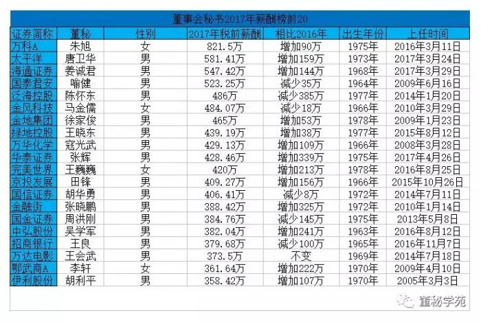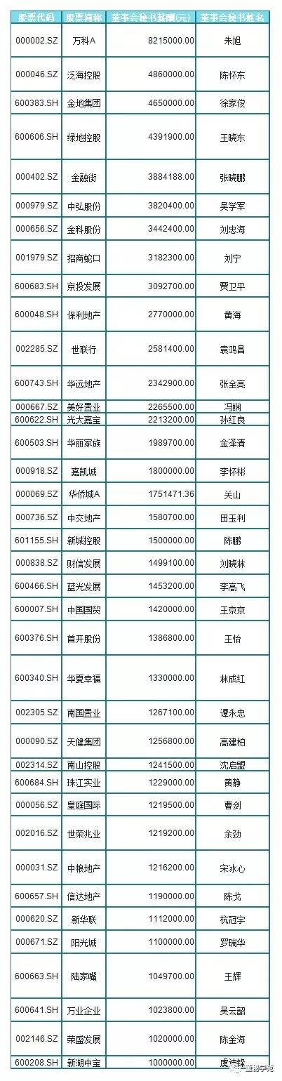 A股2017年董秘薪酬榜出炉:万科董秘朱旭年薪822万夺冠,最穷董秘年薪仅1万