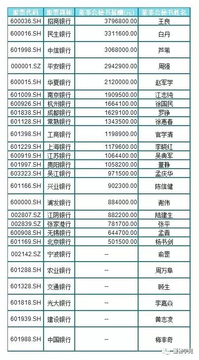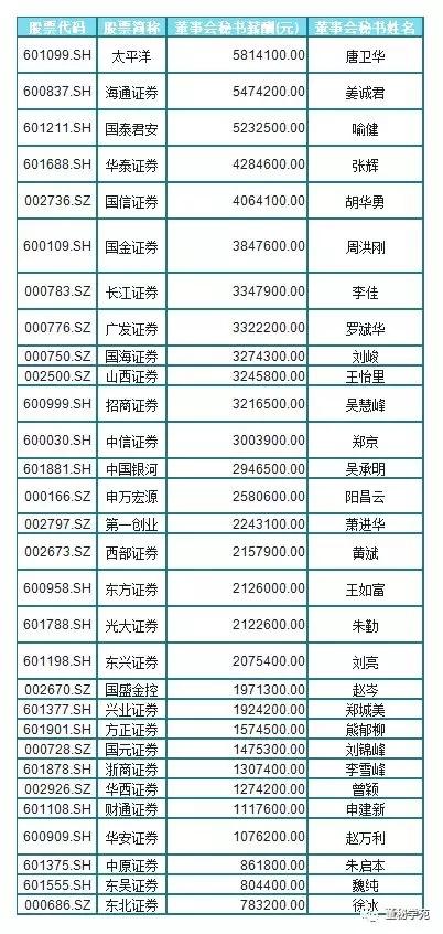 从券商薪酬榜来看,券商董秘依旧是A股高薪酬董秘群,基本上年薪百万起,虽然从名次上有先后调换,但是总体是个让人羡慕的群体。当然,银行和保险上市公司的董秘,也基本上工资都很高,这一直以来都是惯例。