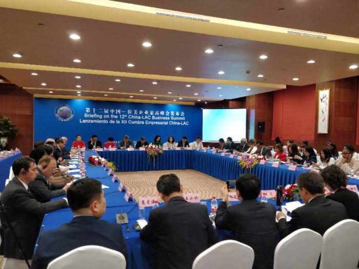 5月4日,中国贸促会会长姜增伟在北京的新闻发布会上宣布,第十二届中国—拉美企业家高峰会(简称“中拉企业家高峰会”)将于11月1日至2日在广东省珠海市举办。本届高峰会将由中国贸促会、广东省人民政府、中国人民银行和美洲开发银行联合主办。