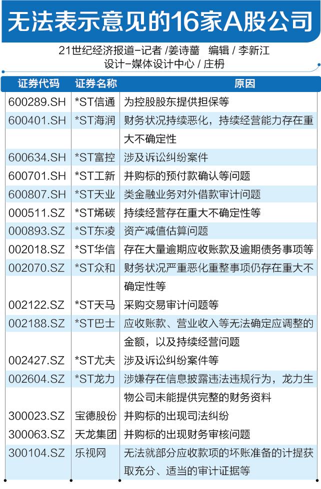 17家“无法表示审计意见”的上市公司,成为年报季A股风险版图的最大戏码。