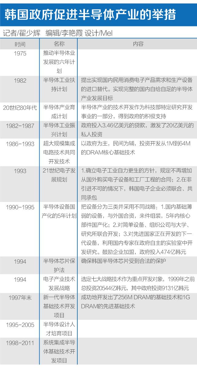 在韩国发展半导体产业的过程中,韩国政府对于产业的支持力度非常强,研发时大力投入,产出后进行保护。