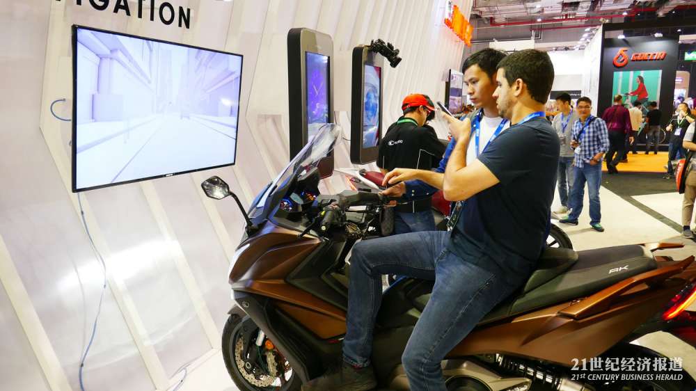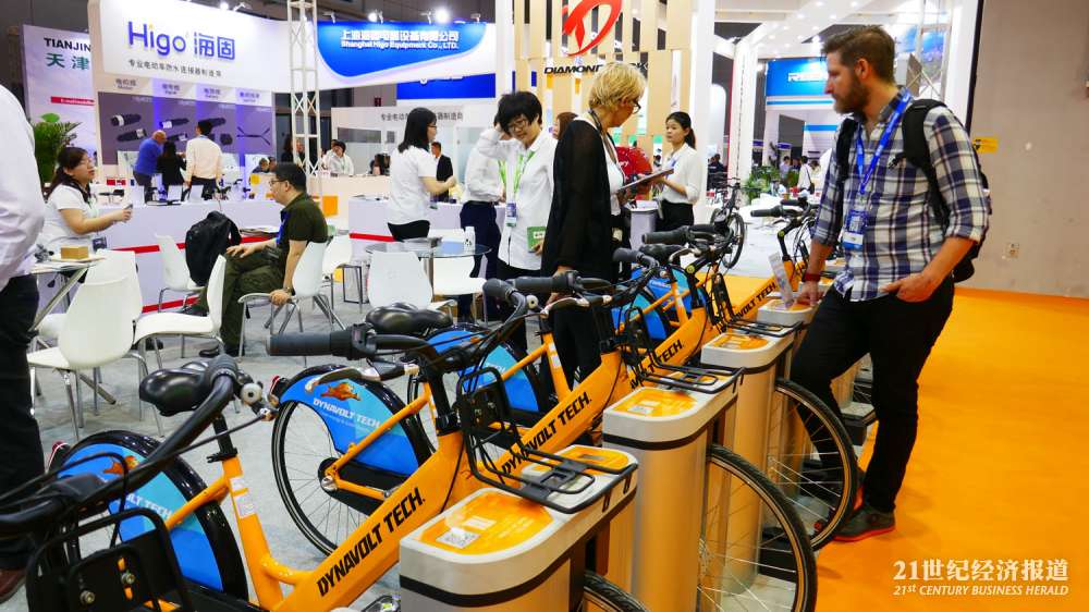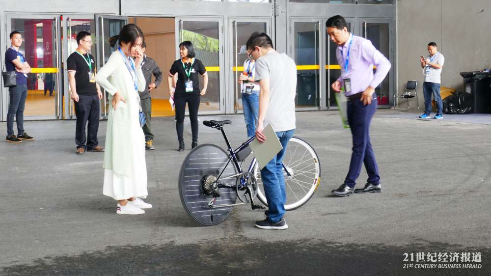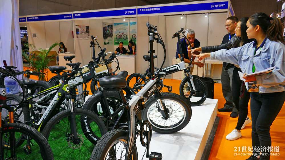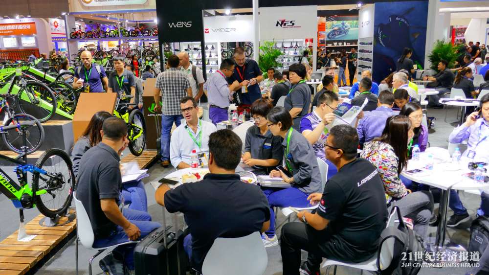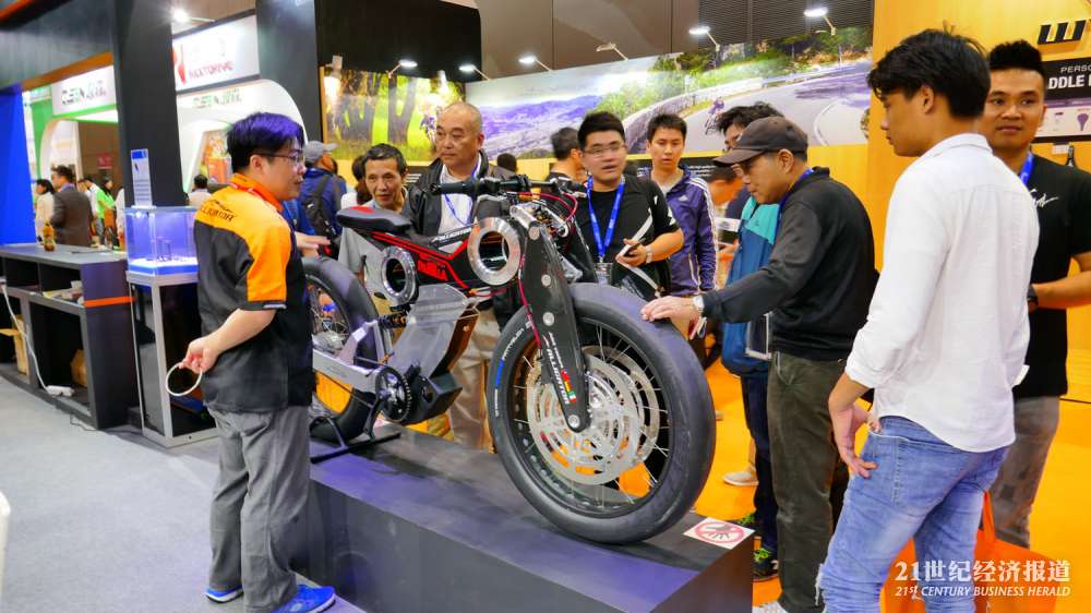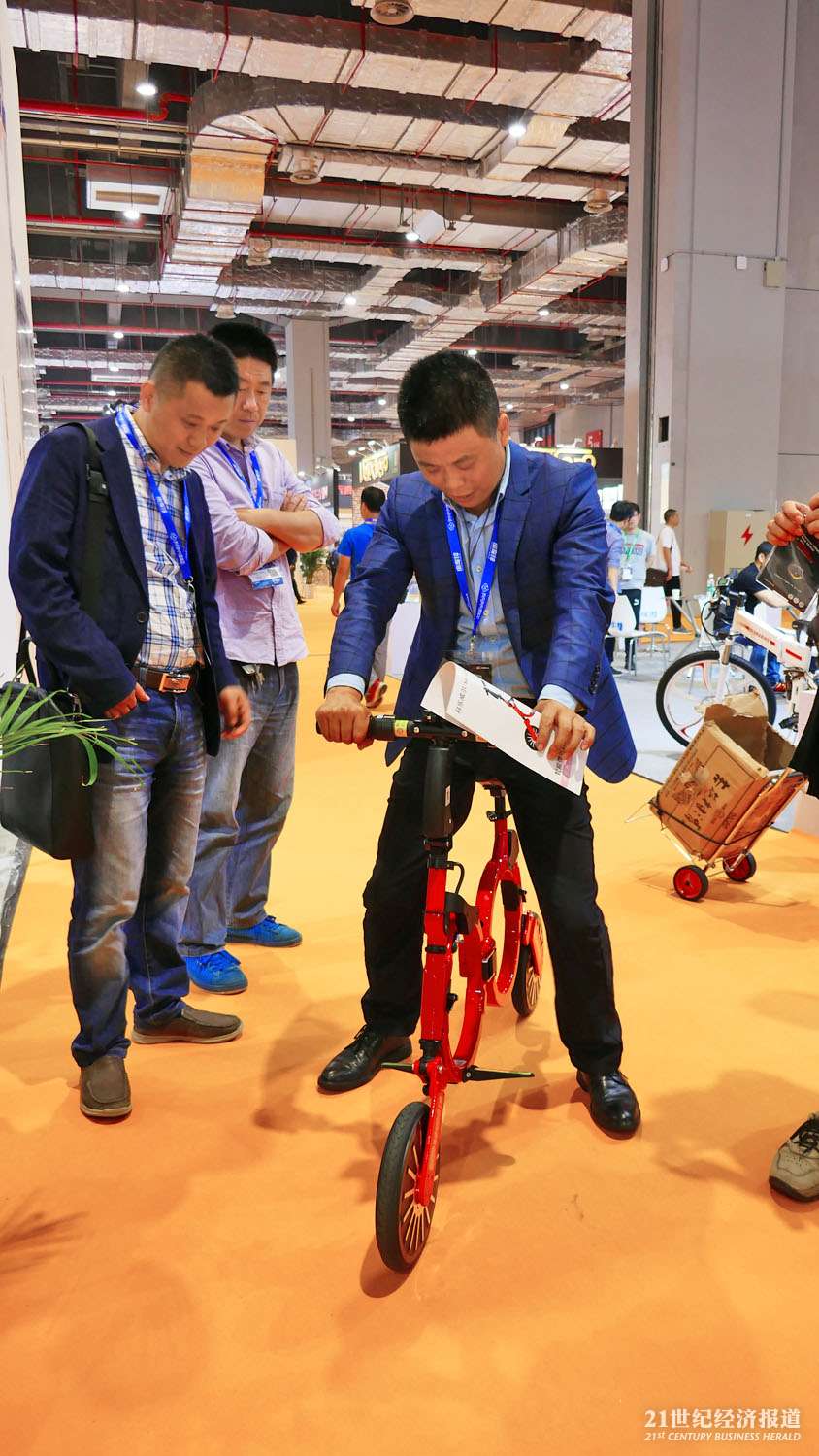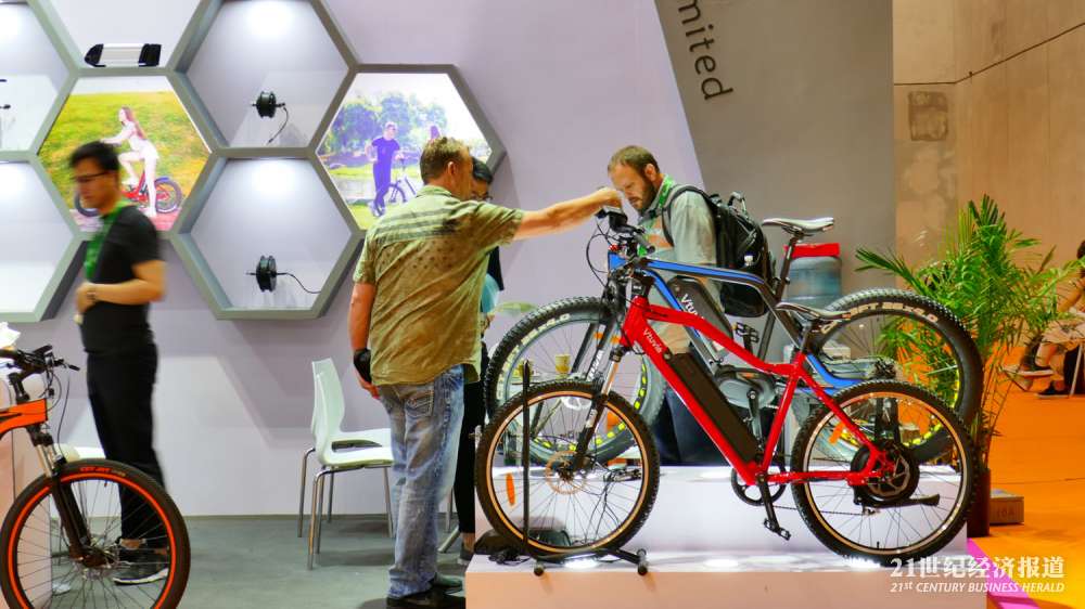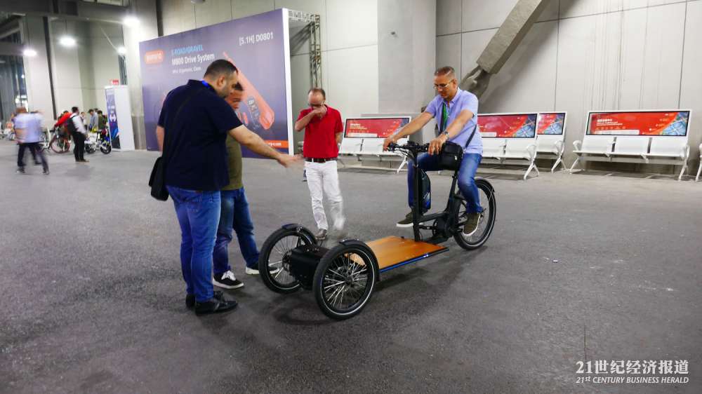 德国厂商推出的新型电动自行车,吸引着中外厂商和客户前来咨询。