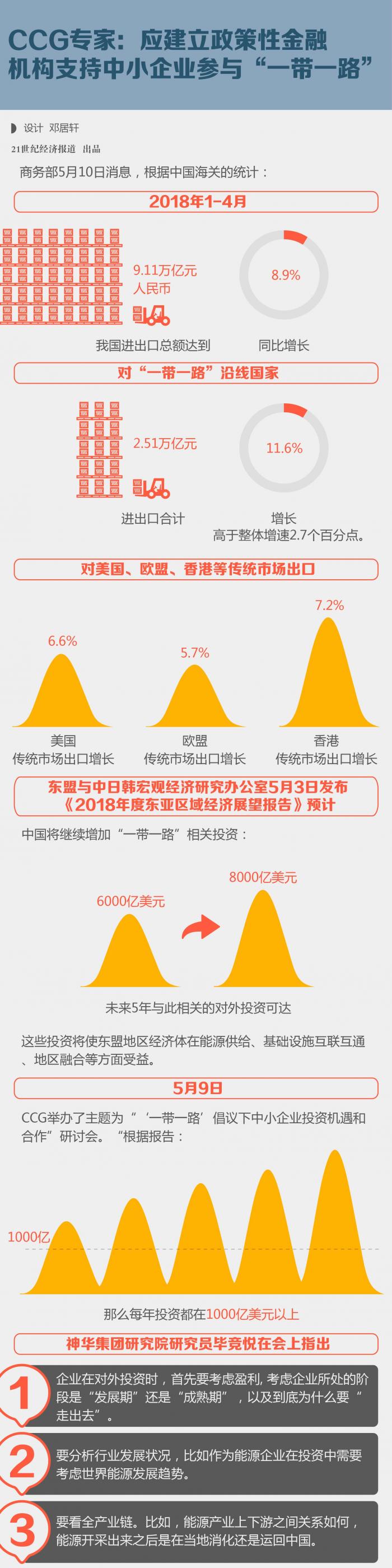 5月9日,CCG举办了主题为“‘一带一路’倡议下中小企业投资机遇和合作”研讨会。“根据报告,那么每年投资都在1000亿美元以上。”CCG高级研究员、国务院发展研究中心亚非发展研究所原所长周晓晶在会上表示,“一带一路”沿线国家的经济发展需要建立在构建现代化经济体系的基础上,因此必须首先实现工业化、再工业化,并建立与之相适应的服务体系。
